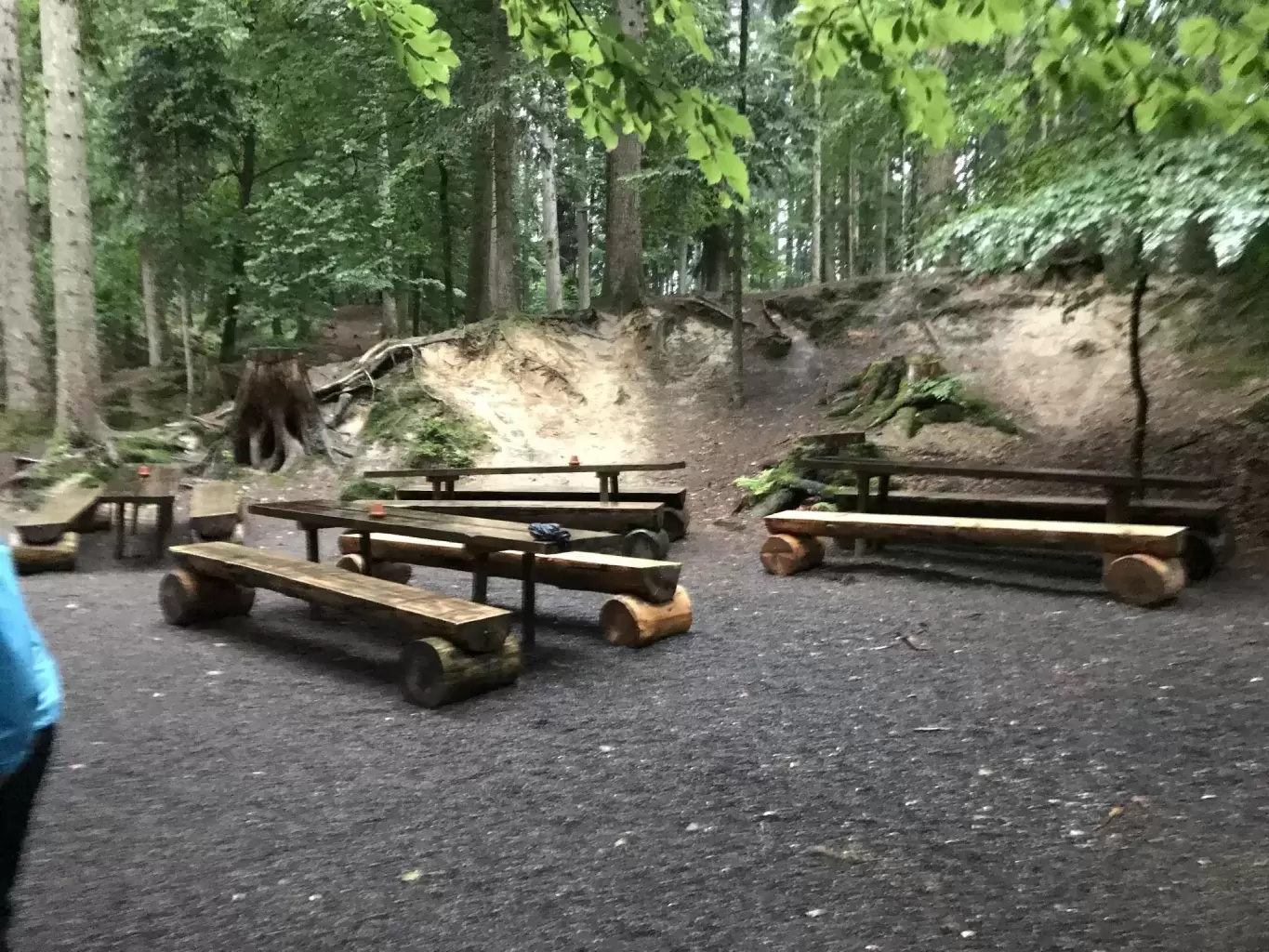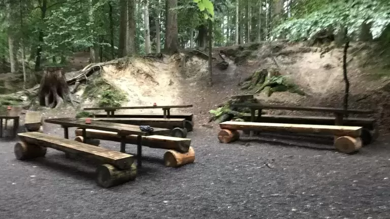 Unterwegs hat es zwei Brätliplätze. Die erste findet sich am Waldrand beim Cholholz (Posten 1) und die zweite im Ramisbergwald (Posten 5). Hier stehen euch mehrere Holztische und Bänke zur Verfügung.